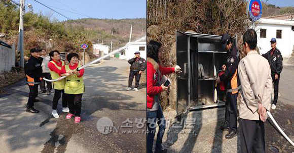순천소방서(서장 이기춘) 저전119안전센터에서는 지난 26일 순천시 별량면 섬돌마을에 위치한 비상소화장치함(상수도 소화전에 부속하여 소방호스 및 관창이 갖추어진 소화전함) 교육 및 훈련을 실시했다. 비상소화장치함은 소방서와 멀리 떨어져 있어 신속히 소방차 진입이 어려운 장소에 설치되어 있어 인근 주민이 불이 났을 때 사용하는 시설로 상수도 소화전에 호스 및 관창을 연결하여 상수도 압력을 이용하여 화재를 진화하는 시설이다. 소화전 인근에 위치한 섬돌마을 요양원 관계자는 이번 훈련 및 교육으로 사용하는 방법을 확실히 숙달시켜 요양원 화재예방에 큰 도움이 될 것이라고 말했다. 저전 안전센터장(소방경 김창수)은 소방차 진입이 어렵거나 출동에 상당한 시간이 소요되는 지역을 선정하여 꼭 필요한 장소에 비상소화장치함을 확대 설치하고 관계자 등에 교육 및 훈련을 지속적으로 실시하여 소방 사각지대가 발생하지 않도록 최선을 다하겠다고 밝혔다. 김대훈 객원기자 aryuje@korea.kr <저작권자 ⓒ FPN(소방방재신문사ㆍ119플러스) 무단전재 및 재배포 금지>