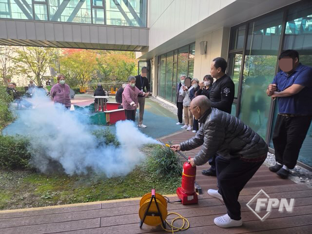 ▲ 노인복지시설 소화기 사용법 실습 © 마포소방서 제공