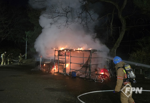 [FPN 김태윤 기자] = 26일 오후 11시 41분께 경기 부천시 소사구 심곡본동의 한 야외 주차장에 세워진 포장마차 천막에서 불이 났다.