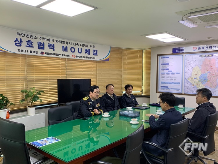 [FPN 정재우 기자] = 종로소방서(서장 장만석)가 지난달 26일 한국전력공전 중부전력지사(지사장 임영섭)에서 상호 협력 업무협약(MOU)을 체결했다.