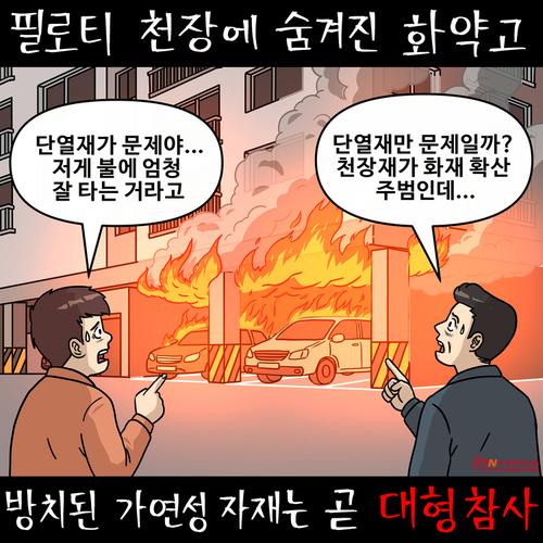 [이수열의 소방 만평] 필로티 건물 화재 부르는 건축자재