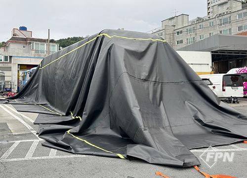 휴어템 관계자는 “전기버스용 질식소화포는 크기가 가로 13m, 세로 20m에 달하지만 경량형으로 개발돼 성인 4명이서 손쉽게 설치할 수 있다”며 “구성품인 롤테이너를 이용하면 보관은 물론 이동까지 가능해 신속하게 화재에 대응할 수 있다”고 설명했다.