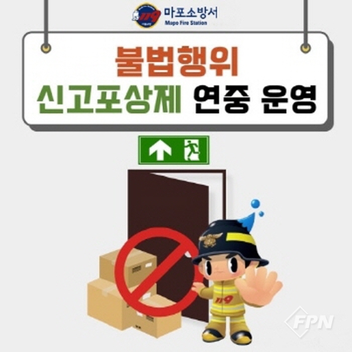 [FPN 정재우 기자] = 마포소방서(서장 서영배)는 화재 안전관리 강화를 위해 ‘소방시설 등 불법행위 신고포상제’를 연중 운영한다고 11일 밝혔다.