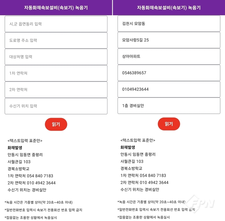 자동화재속보설비(이하 ‘속보기’)는 화재 시 건물의 화재신호를 119상황실로 자동 전송하는 설비다. 하지만 속보기 음성 녹음의 경우 별도의 법적 기준이 없어 녹음하는 사람에 따라 내용과 방식이 달라지는 문제가 지적돼 왔다.