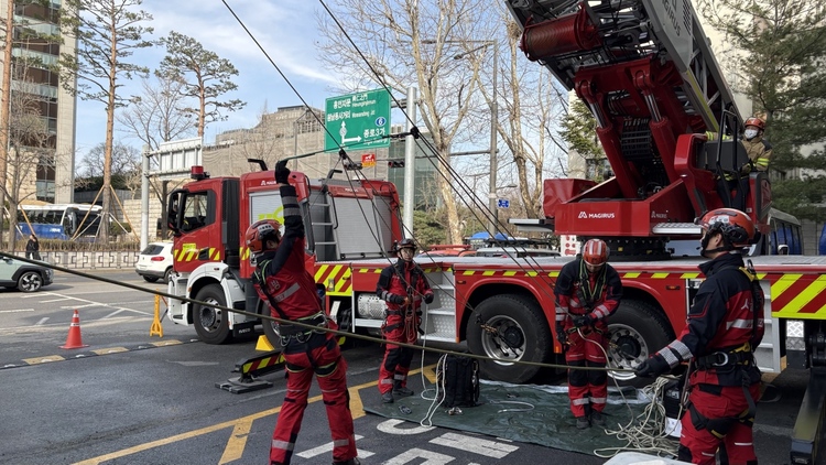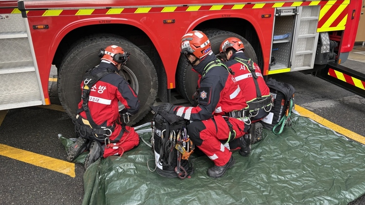 고가사다리차 바스켓의 최대 하중은 300㎏으로 구조 과정에서 장비 하중이 증가할 경우 차량 전도 위험이 발생할 수 있다. 구조대원들은 이같은 점을 고려해 장비 하중과 지반 상태를 면밀히 확인하며 안전에 유의한 구조활동 절차를 집중 점검했다.