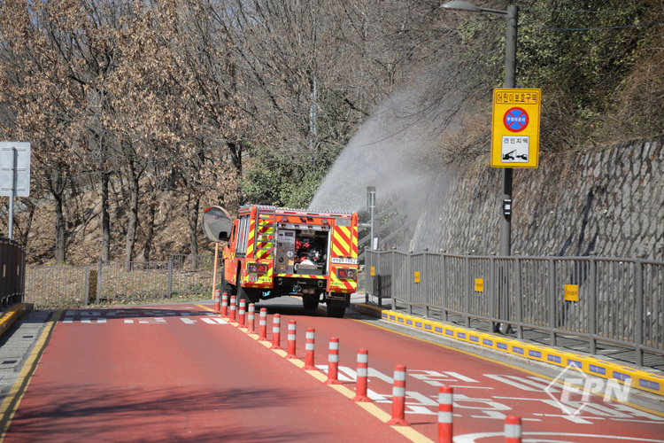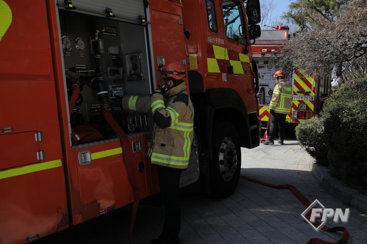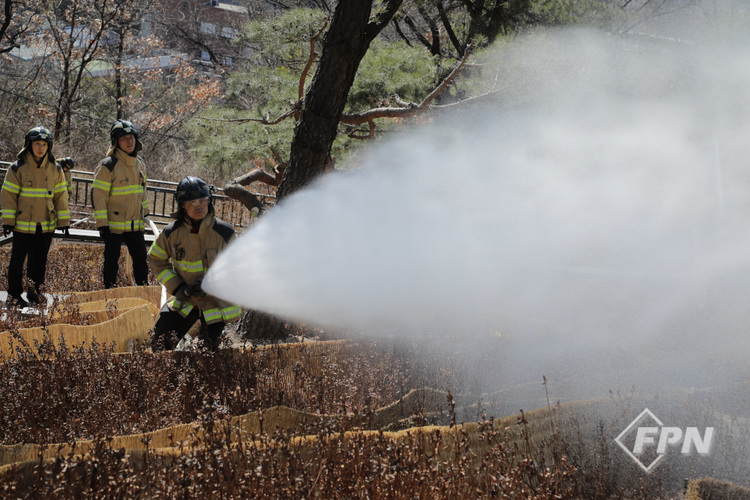 훈련 과정에서 소방서는 김흥곤 서장의 지시에 따라 산불 진압용 고압 수관 전개와 ‘저상형 소방차(저상소방차)’의 실전 방수 능력을 점검했다. 저상소방차는 차체 높이가 낮아 나뭇가지가 우거진 진입로나 비좁은 산악 지형에서도 기동성을 발휘하는 장비다. 이동 중에도 끊김 없이 주수(방수)가 가능해 빠르게 확산하는 산불의 진행 경로를 초기에 차단하는 데 매우 효과적이기도 하다.