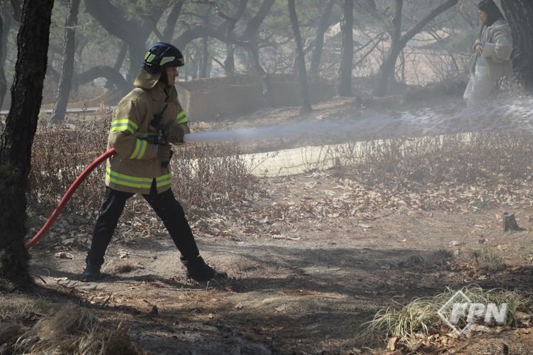 [FPN 정재우 기자] = 동대문소방서(서장 김흥곤)는 지난 13일 오후 배봉산 열린광장과 팔각정 일대에서 관계기관 합동 2026년 봄철 산불 진압훈련과 산불 예방 캠페인을 전개했다고 밝혔다.