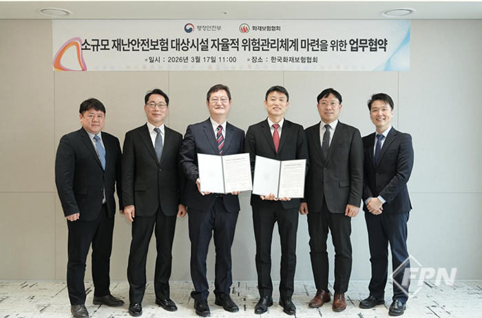 [FPN 최누리 기자] = 행정안전부(장관 윤호중)와 한국화재보험협회(이사장 강영구, 이하 화보협)는 지난 17일 소규모 재난안전보험 대상 시설의 자율적 위험관리체계 구축을 위한 업무협약을 체결했다고 밝혔다.