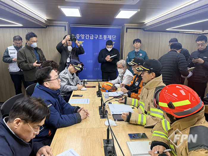 ![]() ▲ 김승룡 소방청장이 관계기관 합동 상황판단회의를 개최하고 인명구조와 피해 최소화를 위한 범정부 대응 방안을 논의하고 있다. © 소방청 제공 |