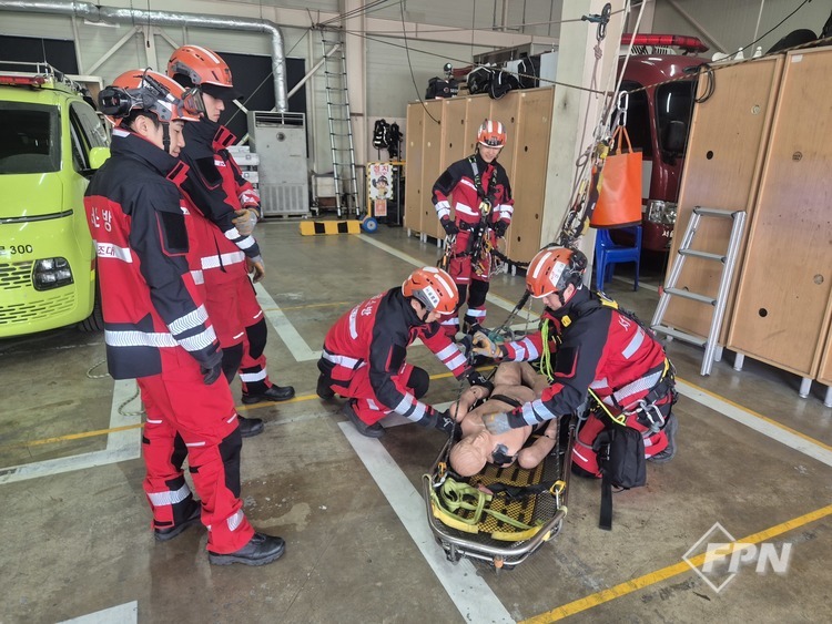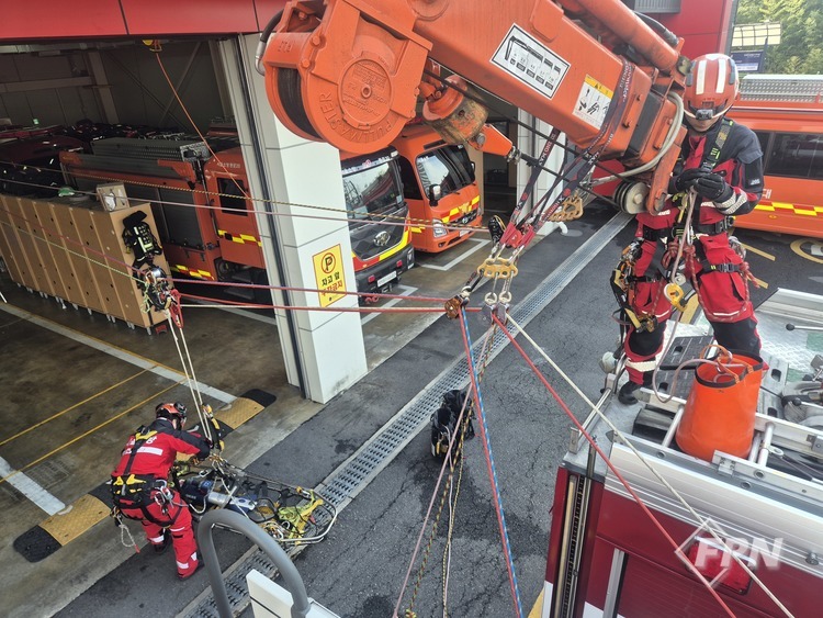 대원들은 다양한 로프 장비와 구조기법을 활용해 구조 공간을 확보하고 들것을 이용한 인명 구조와 이송 과정을 체계적으로 수행했다. 이를 통해 지반침하와 같은 특수 재난 상황에서도 신속하고 안전한 구조 활동이 가능하도록 대비 태세를 점검했다.