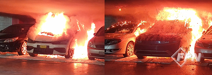 [FPN 최누리 기자] = 지하주차장 전기차 화재 시 스프링클러설비가 작동하면 화염 확산을 늦출 수 있지만 작동하지 않을 땐 인근 차량은 물론 천장 배관 보온재까지 쉽게 불이 번질 수 있다는 실험 결과가 나왔다. 지난 4일과 11일, 19일 사흘간 강원 홍천 건설화재에너지연구원에선 한국토지주택공사(LH)가 주관한 전기차 화재 실증실험이 진행됐다.