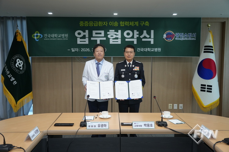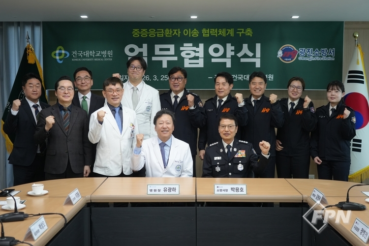 [FPN 정재우 기자] = 광진소방서(서장 박용호)는 25일 건국대학교 12층 대회의실에서 건국대학교병원과 중증응급환자 이송 협력체계 구축을 위한 업무협약을 체결했다고 밝혔다.