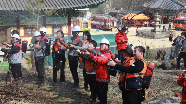 훈련은 산림 인근에서 원인 미상의 화재가 발생해 확산되는 상황 가정하에 ▲초기 화재 진압 ▲인명대피 및 안전 확보 ▲현장 통제 ▲잔불 정리 등 단계별 대응 중심으로 진행됐다.