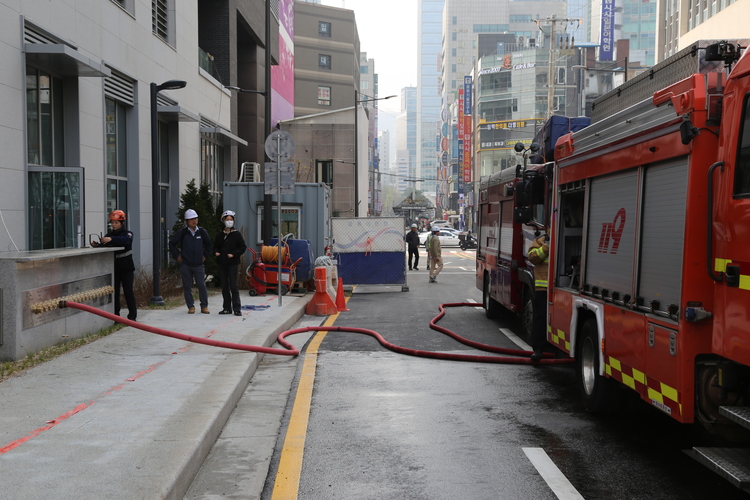 또한 연결송수관을 점유ㆍ방수하고 최상층까지의 급수 가능 여부를 파악했다.
