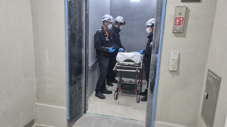 구급대는 비상용 승강기를 활용한 환자 이송 동선을 확인했다. 주들것을 이용한 내부 이동 경로를 확보하며 신속하고 안전한 인명구조 체계 구축 여부를 검토했다.