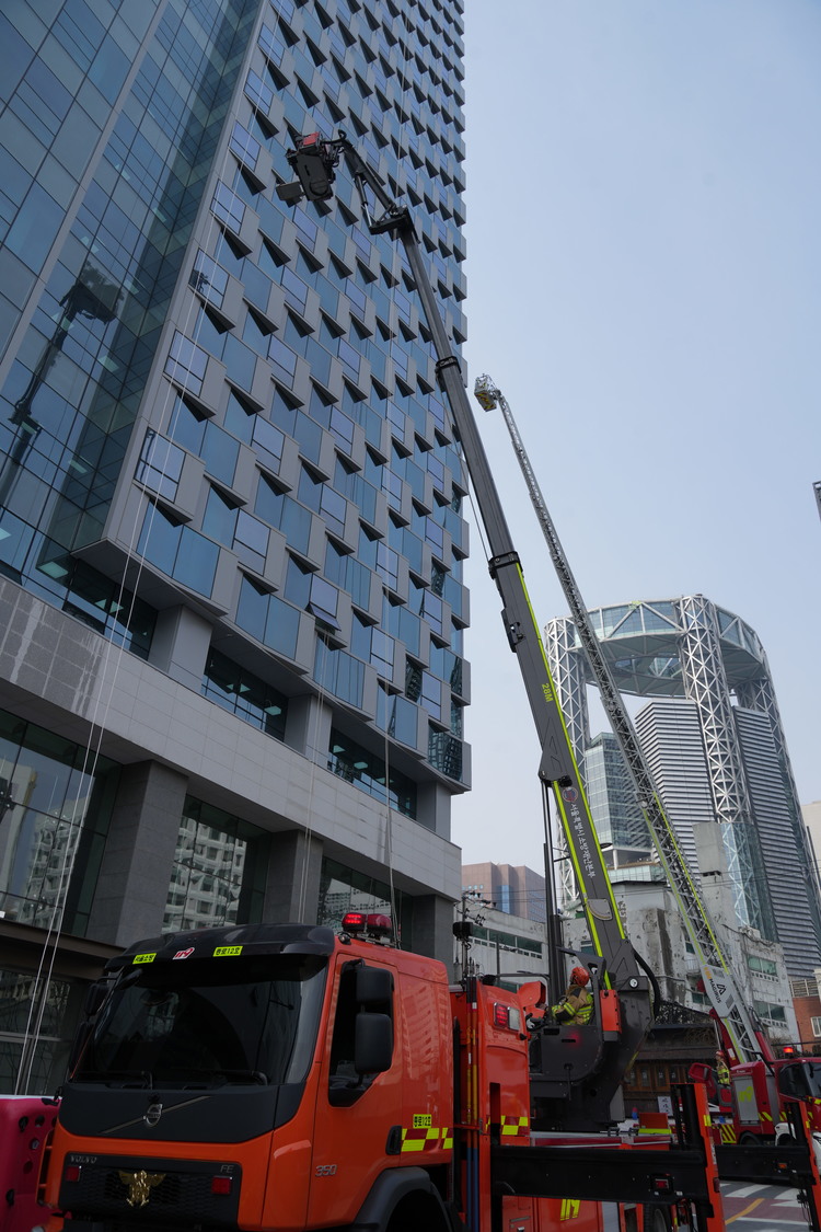 구조대와 진압대는 건물 3개 면에 설치된 소방관 진입창의 위치와 접근성을 확인해 화재진압ㆍ구조 활동 시 활용성을 검증하고 다양한 진입 경로 확보 여부도 함께 확인했다.