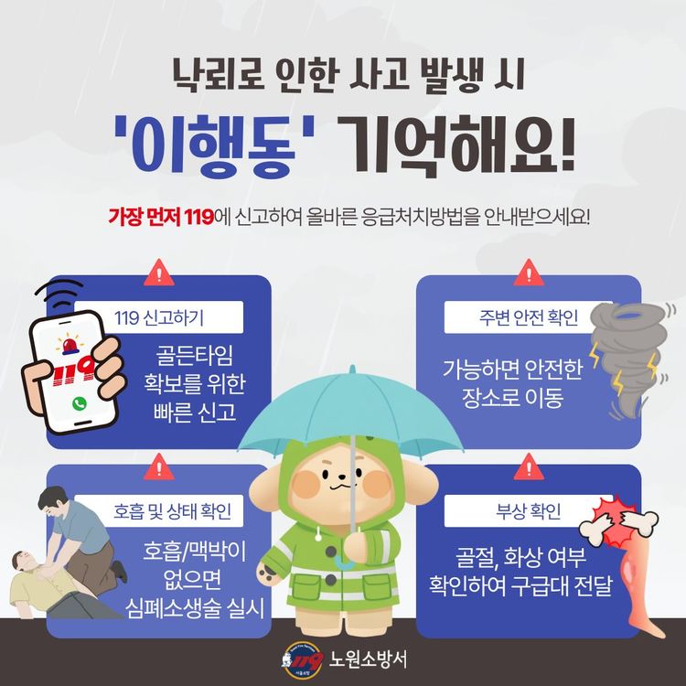 [FPN 정재우 기자] = 노원소방서(서장 진광미)는 봄철을 맞아 낙뢰 사고 예방ㆍ대응 요령을 홍보한다고 20일 밝혔다.