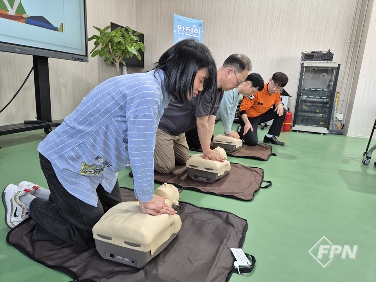 교육은 ▲화재 발생 시 대피요령 및 초기 대응방법을 중심으로 한 화재대응 교육(14:00~14:50)과 ▲심폐소생술 및 자동심장충격기(AED) 사용법 등 응급처치 교육(15:00~15:50)으로 나뉘어 진행됐다.