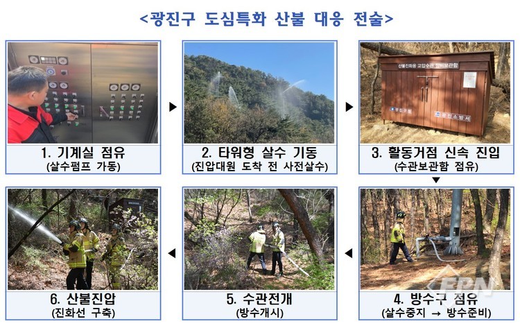 특히 산림과 민가가 인접한 광진구의 지형 특성상 초기 대응 속도는 피해 규모를 결정짓는 핵심이다. 이에 우리는 도심형 산불에 특화된 전략을 고민했고 그 과정에서 아차산에 설치된 ‘산불소화시설’에 주목했다. 본래 이 시설은 건조한 날 물을 분사해 산림을 적시는 산불 예방 시설로 전국적으로도 널리 설치돼 운영되고 있다.