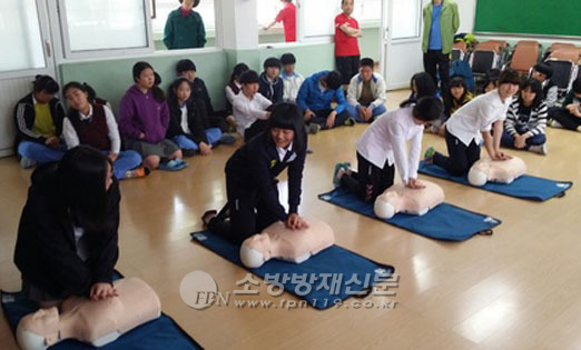 학생과 교사 등 20여명을 대상으로 소화기 사용법, 심폐소생술 등 교육