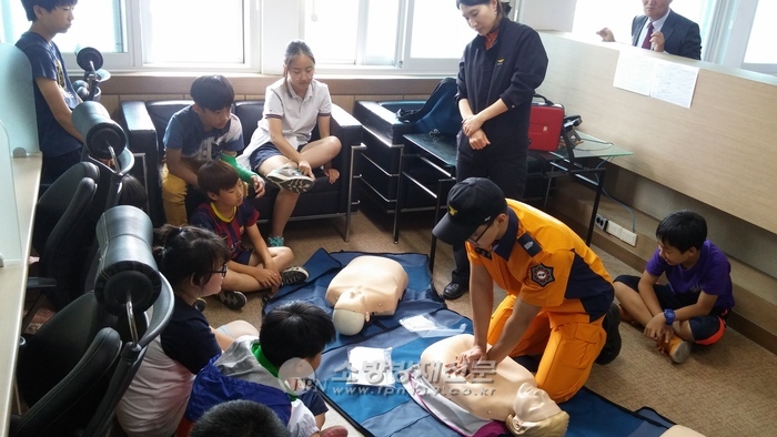 | 금산소방서(서장 김현묵)는 지난 18일 금산군청 2층 재난종합상황실에서 2015 재난대응 안전한국 훈련의 일환으로 심폐소생술 교육을 실시했다. 이번 심폐소생술 교육은 재난대응 안전한국훈련 참관 초등학생 20명을 대상으로 심폐소생술, 자동제세동기(AED)사용법 등에 대해서 강의한 후 직접 실습하는 형식으로 진행했다. 2015 재난 대응 안전한국훈련은 기존의 훈련 방식을 탈피해 현장중심, 생활중심의 실제훈련으로 진행되는 만큼 훈련 참관 학생들이 우리 주변에서 발생할수 위급상황에 대처하기 위해 1시간여 동안 실습 위주의 교육이 진행됐다. 심폐소생술 교육 참가자들은 “실제로 실습을 해보니 알고 있던것보다 어려웠지만 위급상황이 발생하게 되면 당황하지 않고 실습한 대로 대처할 수 있을 것 같은 자신감이 생겼다”고 말했다. 이날 교육을 실시한 최인순 소방장은 “더 많은 심폐소생술 교육을 통해 실생활의 응급상황에서 골든타임을 놓치지 않고 귀중한 생명을 살릴 수 있도록 앞으로도 다양한 계층의 주민을 대상으로 지속적으로 교육을 진행할 예정”이라고 전했다. 박정용 객원기자 yongpj@korea.kr