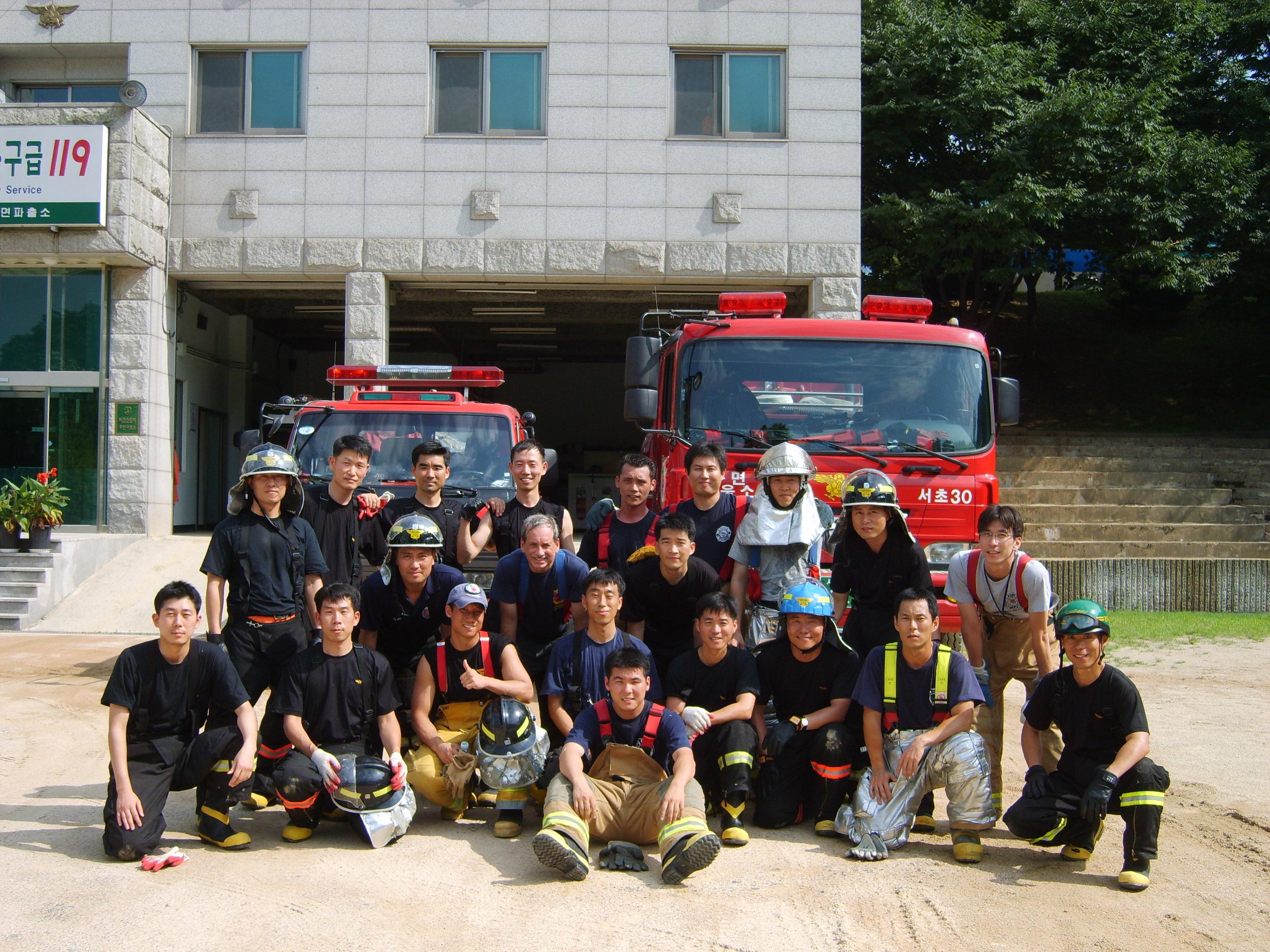 국제소방관 자격반 1주차! 무더운 8월 날씨에도 아랑곳 하지 않고, 20명의 성실한 소방대원들이 모여 지혜와 기술을 연마하는 이곳은 서울소방학교! 미국 bucks county community college 에서 소방기술을 가르치는 교관 tom lange 과 10명의 서울시 소방공무원, 2명의 중앙 119 구조대, 그리고 8명의 주한미군 소방대원들이 모처럼 함께 자리를 같이 했다. 모든 과정이 영어로 진행되는 이번 교육은 "firefighter i & ii" 코스로 국제소방자격인증협회 (ifsac) 에서 공인하는 자격 과정중 하나이다.