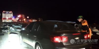 지난 23일 새벽 12시경 경남 고성군 영오면 대전통영간고속도로 통영방면 연화산IC 2Km 지난 지점에서 5중 추돌사고가 일어났다.