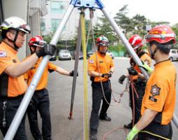 이 다목적 삼각구조대는 맨홀 구조, 각종 산업재해 현장, 산악 사고 등 좁은 공간에서도 구조활동을 할 수 있는 장비다.