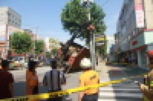 트럭 크레인에 의해 전봇대가 기울어져 왕복 6차선 도로를 1시간 반 가까이 통제했다. 소방 관계자는 운전자가 트럭에 장착된 크레인을 세운 채 운전하다 크레인이 전깃줄에 걸려 사고를 낸 것으로 보고 있다.