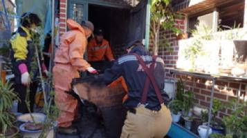 이날 참여한 구암119안전센터 직원, 구암남성ㆍ여성의용소방대원들은 10월 31일 발생한 마산회원구 구암서7길 소재 주택화재 현장을 찾아 피해주민이 조속한 생활의 안정을 찾을 수 있도록 화재연소 폐기물 처리와 펌프차 이용한 주택 내부 세척작업 등 피해복구 지원을 실시했다.