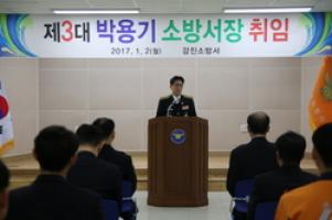 강진소방서는 2일 오전 2층 대회의실에서 제 3대 박용기 서장 취임식을 개최했다. 이날 취임식에는 소방공무원과 의용소방대장 등 39명이 참석한 가운데 진행됐다.