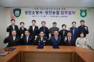 강진소방서(서장 박용기)는 17일 주택 기초소방시설 설치촉진을 위해 강진농협과 업무협약을 맺고 협조체제를 강화하기로 했다.