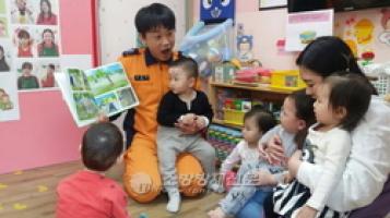 증평소방서(서장 김상현)는 18일 육군 제1987부대 우주어린이집 유아원생 40여 명을 대상으로 소방관이 읽어주는 동화책 안전교육을 실시했다.