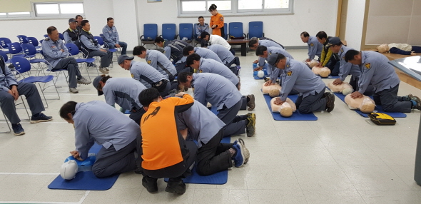 이날 교육은 강진소방서 구급대원(선임교관 김미향) 6명을 교관으로 구성해 ▲성인심폐소생술 처치 방법 ▲자동제세동기 사용법 ▲이물질에 의한 기도폐쇄 응급처치 요령(하임리히법) 등 일상생활에서 손 쉽게 활용할 수 있는 응급처치 요령으로 구성, 응급상황을 가정해 심폐소생술을 직접 체험해 보는 실습위주로 진행됐다.