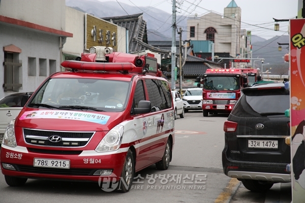 강원 영월소방서(서장 정효수)는 16일 오후 2시 서부시장ㆍ중앙로 일원에서 국민적 공감대 형성과 출동 차량 골든타임 확보를 위해 ‘주민 동승 소방차 길 터주기’ 훈련을 실시했다.