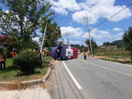 이번 사고는 시내버스가 운행 중 도로 옆 전봇대를 드리 받아 전도된 사고로 다행히 운전자만 가벼운 찰과상을 입었다.