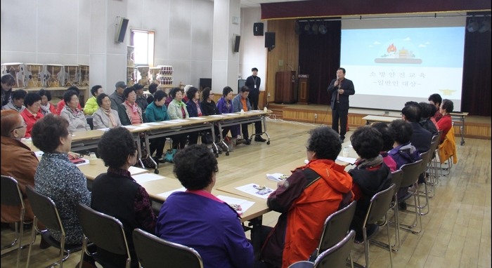 ▲ 나주소방서는 28일 나주시노인복지관에서 경로당 임원진 40명을 대상으로 소방안전교육을 하고 있다.