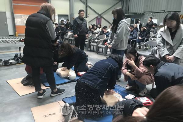 이날 교육은 신속한 신고와 대응으로 인명ㆍ재산 피해를 최소화하고자 추진됐다. 주요 내용은 ▲올바른 119신고 방법 ▲화재 시 대피 방법 ▲소화기와 옥내소화전 등 화재 시 대응 방법 교육 ▲심정지 환자 대비 심폐소생술 체험 ▲기도폐쇄 환자 응급처치 등이다.