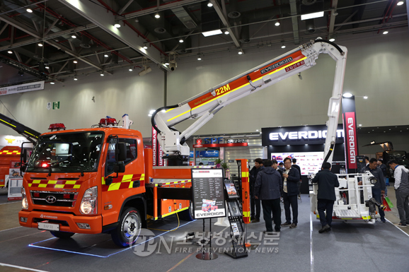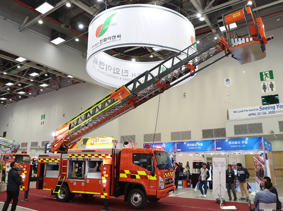 소형 소방사다리차가 시장에서 얼마나 많은 관심을 받고 있는지는 이번 박람회를 통해 재확인할 수 있었다. 소방차량을 제조하는 대다수 기업이 자사 기술력을 집약한 소형 소방사다리차를 소개했다.