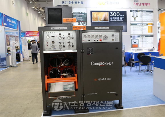 그간 3구용과 4구용 안전충전함을 제조ㆍ유통해왔던 A&G테크는 이번 박람회에서 공기호흡용기 충전기와 안전충전함의 기능이 모두 담겨 있는 신제품을 선보이며 참관객의 눈길을 끌었다. 관련 법률에 따라 안전충전함 설치는 가스시설공사업 면허를 소지한 자만이 할 수 있다. 이 때문에 대다수 소방관서에서는 장비 구매와 설치 계획을 별도로 세우고 예산을 집행하는 실정이다.