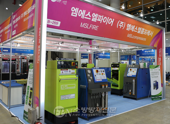 이번 박람회에서 MSL파이어는 MSL콤프레서에서 생산한 2구용과 3구용, 4구용 안전충전함을 참관객에게 선보였다.