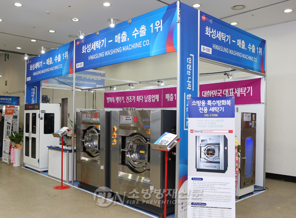 국내 최초로 소방용 특수방화복 세탁기의 KFI 인정을 획득한 화성세탁기(회장 고창오)가 이번 박람회에서 NFPA 규격을 만족하는 소방용 특수방화복 세탁기 ‘HS-119W’를 새롭게 선보였다.