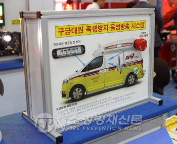 (주)무선테크윈(대표 이경감)이 개발한 구급대원 폭행피해 예방시스템은 ‘경고 방송’과 ‘비상벨 설비’로 구성되는데 환자 이송 공간에 주취자가 탑승하면 구급대원은 먼저 경고 방송 버튼을 눌러 주취자에게 경각심을 갖도록 한다. 이를 무시하고 주취자의 폭행 위협이 이어질 경우 비상벨을 눌러 운전자에게 이 사실을 알려 폭행피해를 예방할 수 있다.
