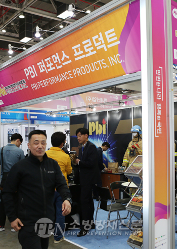 방염섬유를 제조하는 글로벌 기업 PBI퍼포먼스 프로덕트(대표 윌리엄 러슨)는 세계 각지에서 사용되는 PBI 소재의 소방장비를 소개했다.