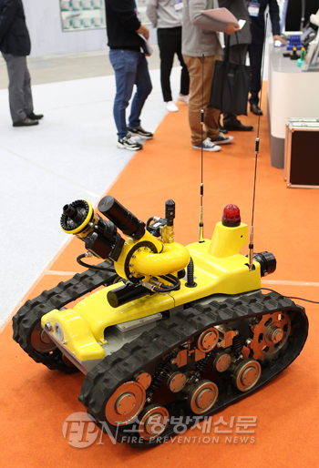 중국 CITIC 그룹과 기술제휴를 맺고 국내에 화재진압용 로봇을 도입한 (주)경진인터내쇼날(대표 허윤)이 박람회 장에서 공개 시연회를 열었다.