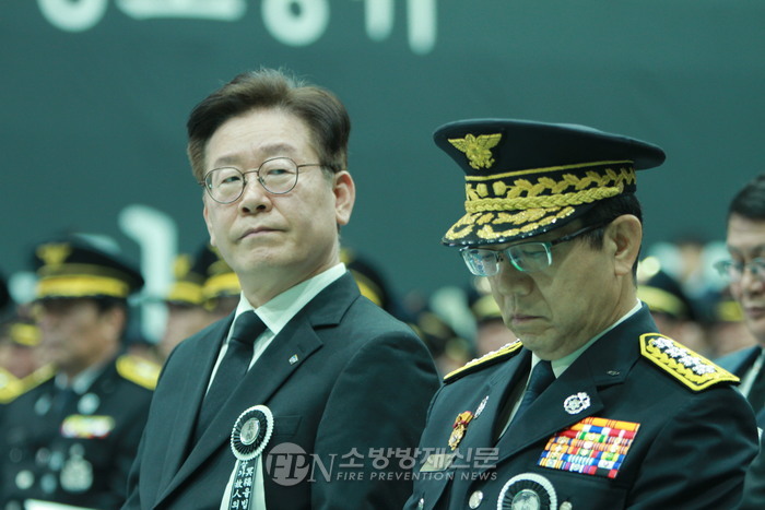 이재명 지사는 영결사에서 “고 석원호 소방관의 생명과 안전을 책임지지 못 한 것에 가슴이 무너진다”며 “유가족분들이 이 깊은 상실감을 딛고 일어설 수 있도록 끝까지 곁을 지키겠다”고 말했다.