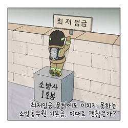 [이수열의 소방 만평] 최저임금보다 낮은 소방무원 기본급