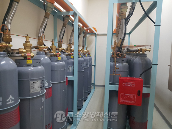 ![]() ▲ 가스계소화설비가 설치된 소화약제 저장실 ©대구안전생활실천시민연합 제공 |