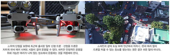 특히 재난 현장 주변에는 소방차량과 사람이 많아 기본 100~200m를 벗어나야 이륙 장소를 확보할 수 있는 경우도 있기 때문이다. 더구나 공간적 여유가 있는 장소를 찾더라도 도심 특성상 동일한 증상이 재발생할 확률이 높다.