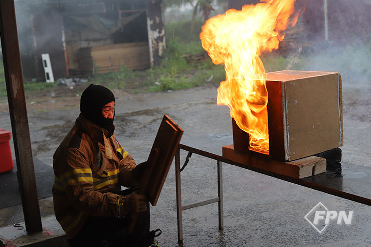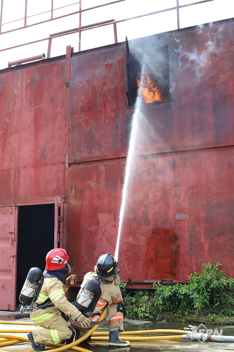 모든 이론 교육이 끝나고 나면 본격적으로 개인보호장비(PPE)와 공기호흡기마스크(SCBA)를 착용하고 훈련을 한다. CFBT 중 화재 성상(Fire Behavior) 훈련장은 특정한 규격으로 제작된 컨테이너에 특수한 내열처리ㆍ조치가 돼 있다. 훈련장의 규격이나 자세한 시설은 추후에 다시 다룰 예정이다.